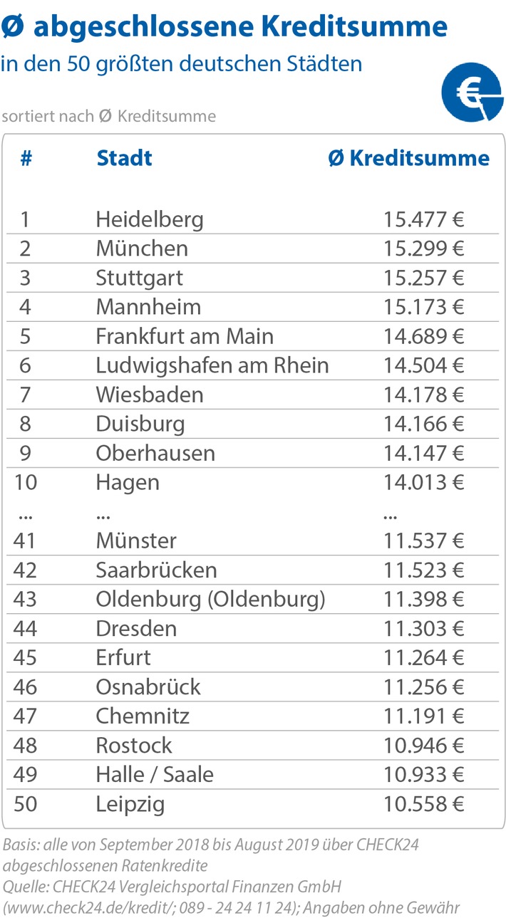 Hohe Kreditsummen in süddeutschen Städten, niedrige im Osten