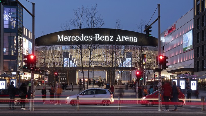 Veranstaltungsstätten Mercedes-Benz Arena und Verti Music Hall aus,