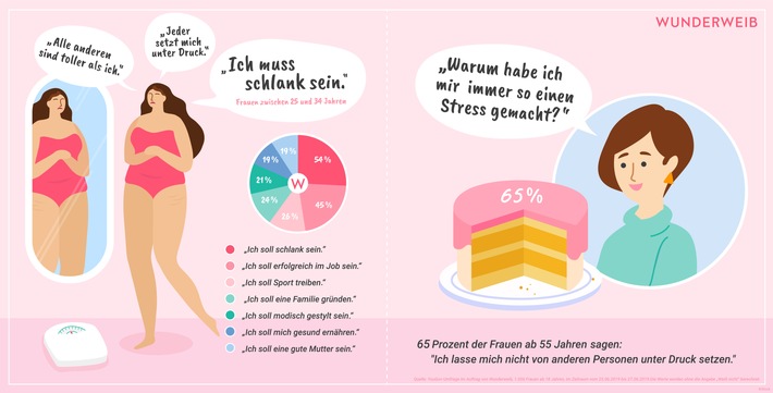 Hälfte (54 Prozent**) der 25- bis 34-Jährigen den Druck, schlank sein zu müssen.