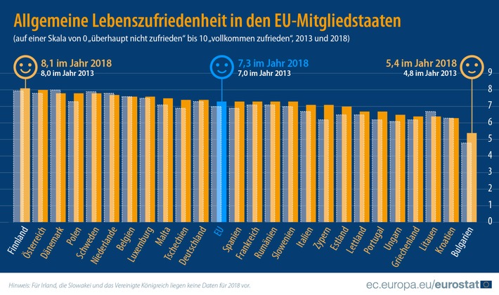 "Lebensqualität in der Europäischen Union im Jahr 2018: Wie zufrieden sind die Menschen mit ihrem Leben?