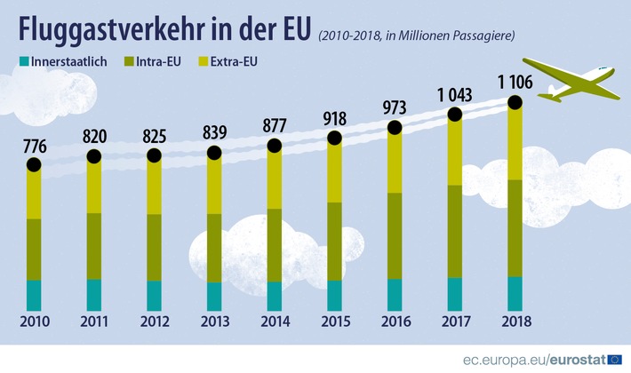 Europäischen Union (EU) mit dem Flugzeug. Dies ist ein Anstieg um 6% gegenüber