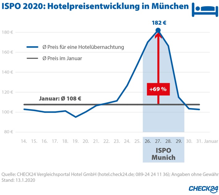 "Die Hotelpreise in München steigen zur weltgrößten Sportmesse kräftig an", sagt