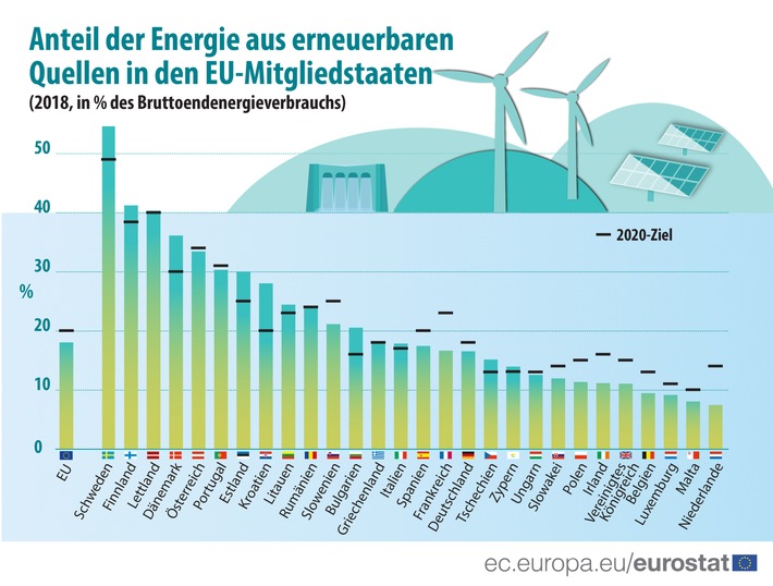 "Erneuerbare Energien in der EU im Jahr 2018: Anteil erneuerbarer Energien in der EU auf 18,0% gestiegen (FOTO)"