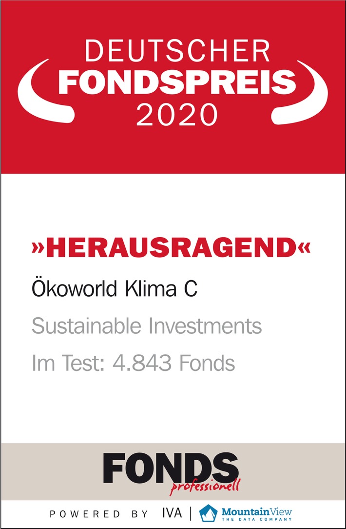 Ausgezeichneter Klimaschutz: DEUTSCHER FONDSPREIS 2020 für ÖKOWORLD KLIMA / Der im Jahr 2007 aufgelegte Investmentfonds reagiert auf die durch den Klimawandel bedingten weltweiten Herausforderungen (FOTO)