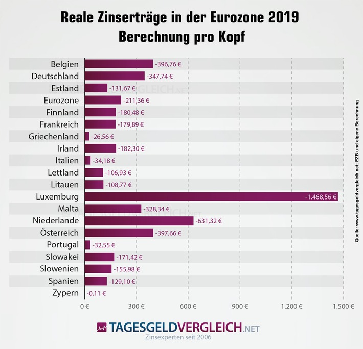 Zypern (2,47 Milliarden Euro). Die realen Zinserträge aller 19 Staaten summieren