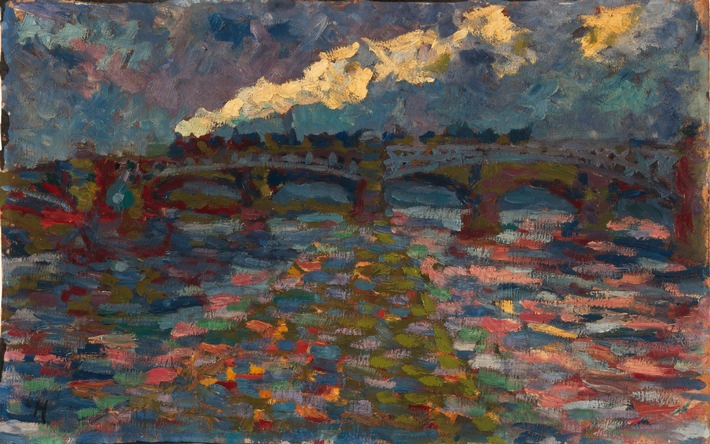 das Bild "Flusslandschaft mit Brücke und Zug" von Erich Heckel (1883-1970), das