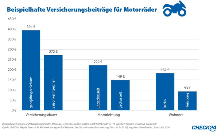 (ots) - - Mit Saisonkennzeichen zahlen Biker im Schnitt 31 Prozent weniger als mit ganzjährigem Schutz - Motorradversicherung in Flensburg 49 Prozent günstiger als in Berlin - Sparpotenzial zwischen günstigster und teuerster Versicherung bei bis zu 90 Prozent