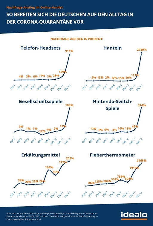 *Untersucht wurde die wöchentliche Nachfrage in der jeweiligen Produktkategorie auf idealo.de im Zeitraum zwischen dem 20.01.2020 und dem 22.03.2020.