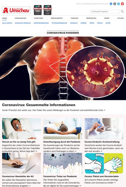 - In den kommenden Ausgaben der Apotheken Umschau informiert die Redaktion ebenfalls über die Corona-Pandemie. Während sich die digitalen Kanäle auf die aktuelle Berichterstattung konzentrieren, erfahren Leserinnen und Leser hier alles, was sie dauerhaft für ein gesundes Leben in der Zeit der Pandemie wissen müssen.