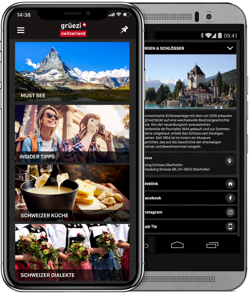 Über 50'000 Nutzer seit der Lancierung vor sechs Jahren und Platz 1 in den App-iTunes Charts in der Rubrik Reisen bereits kurz nach der Einführung sprechen für sich. Grüezi Switzerland ist bei Schweizern sowohl als auch bei Touristen beliebt, sie punktet mit Informationen, Unterhaltung und unzähligen unvergesslichen Schweiz-Tipps. Unter MUST SEE beispielsweise finden Nutzer die schönsten Flecken und Sehenswürdigkeiten der Schweiz nach Regionen eingeteilt. Grüezi Switzerland ist und bleibt zudem ein grossartiger Sprachführer und bietet unter SCHWEIZER DIALEKTE alle Eigenheiten für den touristischen Sprachgebrauch des Schweizer Singsangs in Form von situativ gegliederten Dialekt-Tondateien. Anklicken, reinhören.