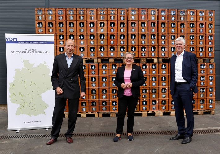 (ots) - Das Bundesumweltministerium und die deutschen Mineralbrunnen setzen sich gemeinsam für den Schutz der Umwelt und der Ressourcen in Deutschland ein. Bei einem persönlichen Austausch mit Bundesumweltministerin Svenja Schulze am 28. August 2020 verdeutlichte der Vorsitzende des Verbandes Deutscher Mineralbrunnen (VDM), Dr. Karl Tack, den hohen Stellenwert des Naturproduktes Mineralwasser für eine gesunde Ernährung sowie die Bedeutung der Mineralbrunnenbranche für die Sicherung von Arbeitsplätzen in ländlichen Regionen. Die Bundesumweltministerin begrüßte die Investition in eine Mehrwegabfüllanlage und forderte die Mineralbrunnen auf, noch stärker auf Mehrweg zu setzen, der gerade beim regionalen Konsum besonders vorteilhaft ist.