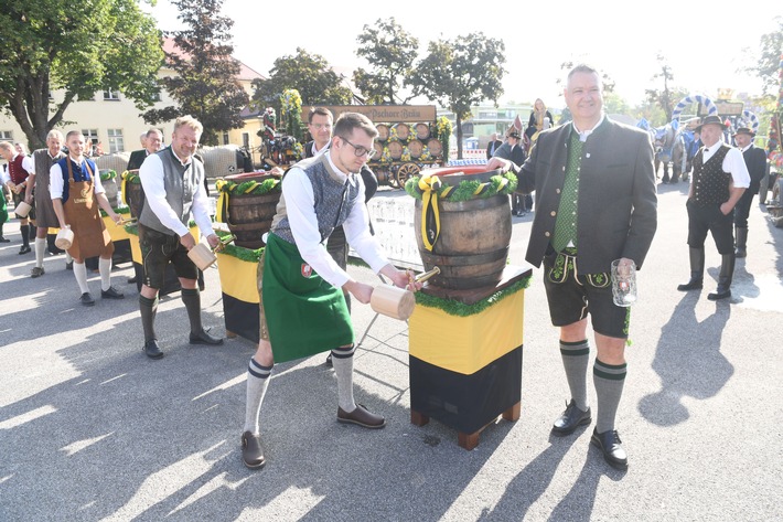 Ein Herz aus Biertischgarnituren umrahmte die Prachtgespanne der Brauereien, je ein Fass Oktoberfestbier wurde angezapft, mit Abstand zugeprostet und so entstand ein Bild als Gruß auch an alle Gäste, die in diesem Jahr nicht nach München zum Feiern kommen. Die Wehmut über die ausgefallene Wiesn war bei allen Teilnehmern zu spüren, aber in diesem Moment kam auch die Verbundenheit mit dem größten Volksfest der Welt zum Ausdruck.