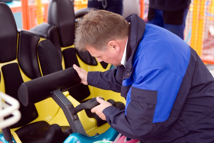Bei rasanteren Fahrgeschäften ist es zudem ratsam, Kinder nicht auf die Außenplätze, sondern auf die für sie sichereren Innenplätze zu setzen und zu prüfen, ob der Sicherheitsbügel richtig eingerastet ist. Grundsätzlich sollten alle Gegenstände, etwa Handy oder Schlüssel, gut verstaut werden. "Wenn Gegenstände während der Fahrt zum Beispiel aus Taschen herausfallen, werden sie zu gefährlichen Geschossen", erklärt Hüsch. Regelmäßig müssen Schausteller ihre Anlagen überprüfen lassen. Vor der ersten Inbetriebnahme führen Prüfdienstleister wie TÜV Rheinland die Erstprüfung des Fahrgeschäfts durch. Geprüft wird bis ins kleinste Detail - beispielsweise die Stabilität, Mechanik oder Steuerungstechnik der Attraktion.