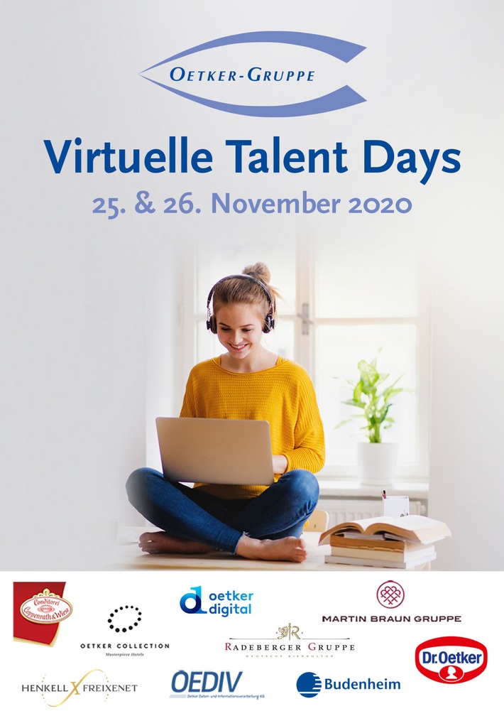 (ots) - Auch in diesem Jahr gewähren die Unternehmen der Oetker-Gruppe jungen Talenten Einblicke in die Arbeit der verschiedenen Fachbereiche IT, Marketing, Personal, Supply Chain und Vertrieb. Mit dabei sind die Chemische Fabrik Budenheim, die Conditorei Coppenrath & Wiese, Dr. Oetker, Henkell Freixenet, die Martin-Braun-Gruppe, die Oetker Daten- und Informationsverarbeitung (OEDIV), Oetker Digital, Oetker Collection und die Radeberger Gruppe. Um die Sicherheit aller Teilnehmer in Zeiten der Corona-Pandemie zu gewährleisten, werden die Talent Days 2020 erstmals virtuell abgehalten. Die einzelnen Unternehmen stellen den Teilnehmern vom 25. bis 26. November in Webinaren und "Insight Sessions" ihre Fachabteilungen vor, berichten über ihre aktuellen Herausforderungen und informieren über Einstiegsmöglichkeiten. "Die Virtuellen Talent Days 2020 bieten Studierenden und Absolventen die Möglichkeit, erste Schritte auf dem Weg ins Berufsleben zu machen - durch gewinnbringende Kontakte, informative Sessions und praxisnahe Einblicke. Wir freuen uns darauf, junge Talente kennenzulernen und für die Vielfalt der Oetker-Gruppe zu begeistern", so Clarissa Lührig, HR Projektkoordinatorin der Oetker-Gruppe. Interessierte Studierende und Hochschulabsolventen können sich ab sofort bis einschließlich 08. November 2020 auf https://www.oetker-gruppe.de/de/karriere/talent-days bewerben.
