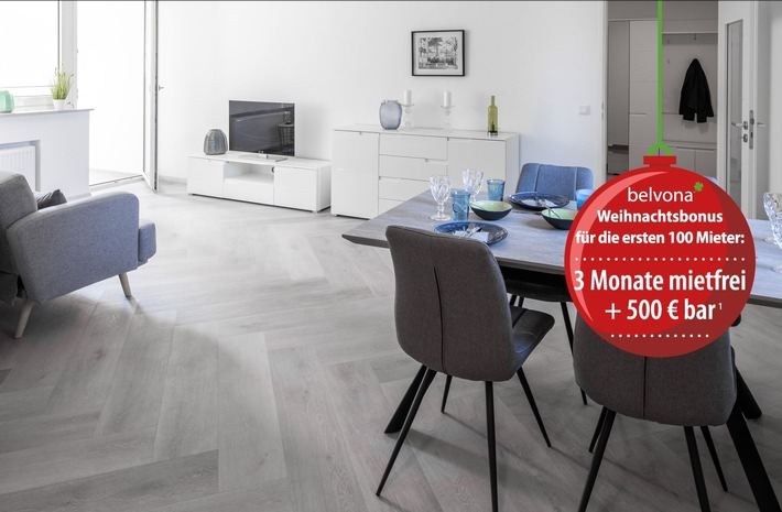 (ots) - Wohnqualität für höchste Ansprüche - wer sich das wünscht, ist bei belvona genau richtig. Im Rahmen einer exklusiven Weihnachtsaktion hat sich das Wohnungsunternehmen für Mietinteressenten an 11 Standorten jetzt etwas Besonderes ausgedacht: Wer sich jetzt für eine Wohnung entscheidet und zu Weihnachten einzieht, wohnt 3 Monate mietfrei und bekommt 500 Euro Weihnachtsgeld bar auf die Hand.