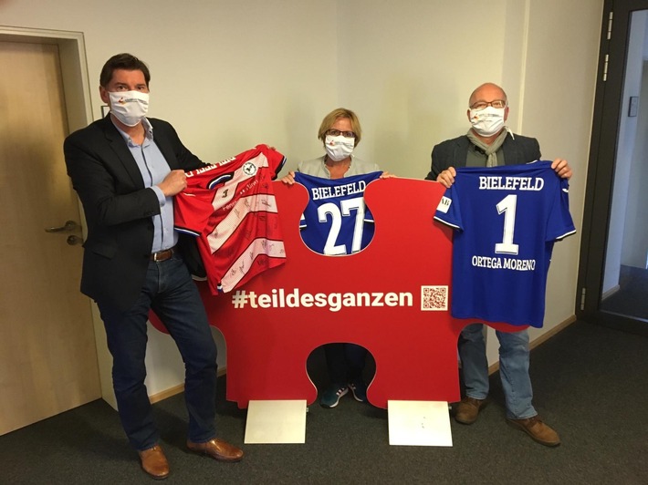 "Besondere Zeiten erfordern besondere Maßnahmen und oft ergeben sich gerade in der Krise ganz neue Ideen, Lösungen und Wege. Also haben wir in einer Kooperation mit dem DSC Arminia Bielefeld unter dem Motto "Fußball unterstützt #alltagshelden", original signierte #alltagshelden-Trikots von Arminias Profispielern zugunsten der Mitarbeiterinnen und Mitarbeiter in einer aufwändigen Online Auktion versteigert. Dabei handelte es sich natürlich nicht um irgendwelche Trikots, sondern um handsignierte Unikate des DSC Arminia Bielefeld aus einer der erfolgreichsten Spielzeiten der jüngeren Vereinsgeschichte, der Aufstiegssaison," erläutert Geschäftsführer Michael Ackermann die Aktion. Der ostwestfälische Traditionsverein hat das Klinikum aktiv unterstützt in der Bewältigung der Corona-Krise und hat seine Solidarität und Dankbarkeit gegenüber den Mitarbeiterinnen und Mitarbeiter, die sich in diesen Zeiten in besonderem Maße für die Gesundheit der Menschen in unserer Stadt einsetzen, gezeigt.