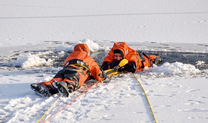 Wer sich auf das Eis wagt, sollte sich zur eigenen Sicherheit vorher nach geeigneten Rettungsmitteln umsehen. "Auch ein umgedrehter Schlitten, eine Leiter oder ein Seil sind bei einem Eiseinbruch geeignete Hilfsmittel", so der praktische Rat von Wiese. Denn: Im Notfall zählt jede Sekunde, der Verunglückte droht schnell zu unterkühlen. Zunächst sollten Helfer jedoch unbedingt den Notruf (112) absetzen und möglichst weitere Helfer mobilisieren.
