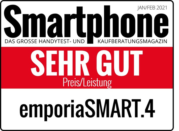(ots) - emporia Telecom, österreichischer Hersteller von einfach zu bedienenden Smartphones, Apps und Tastenhandys, erhält erneut eine hohe Auszeichnung. Das renommierte Fachmagazin SMARTPHONE kürt das emporiaSMART.4 zum Preis-Leistungs-Sieger in der Kategorie einfach zu bedienende Smartphones