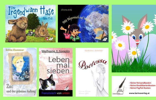 (firmenpresse) - Wenn Sie von heute an bis Ostern direkt über den Karina-Verlag bestellen, hüpft noch eine Überraschung mit ins Osternest. Was es ist, wird natürlich nicht verraten! Das sollten Sie sich auf keinen Fall entgehen lassen.