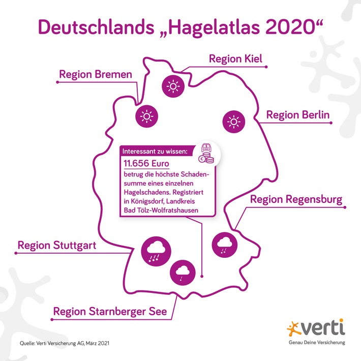 (ots) - Im Großraum Stuttgart hat es im vergangenen Jahr mehr gehagelt als in jeder anderen deutschen Region. Diese Erkenntnis geht aus einer internen Analyse der registrierten Hagelschäden durch Deutschlands zweitgrößten Kfz-Direktversicherer, der Verti Versicherung AG, hervor.