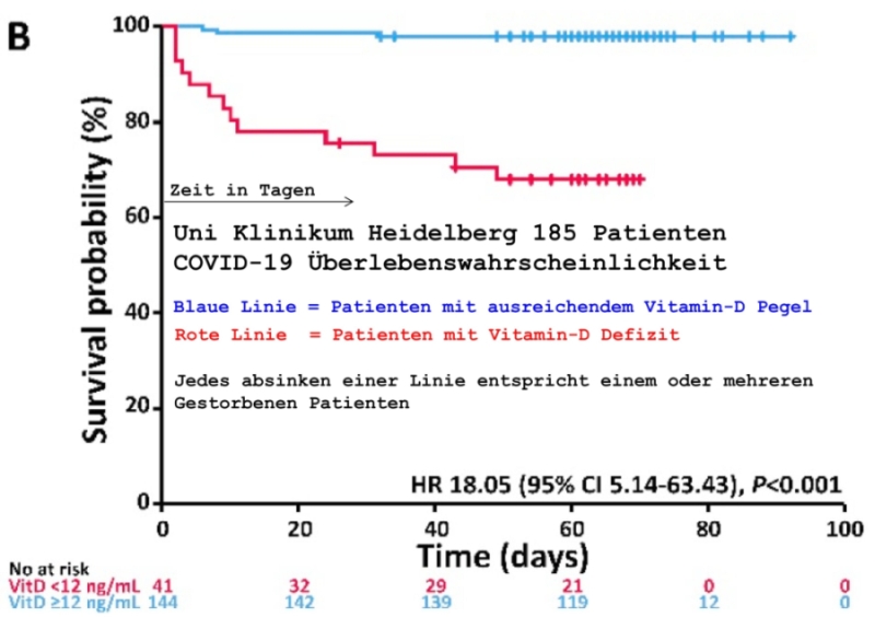 Ich habe darüber bereits in einer Publikation vom 30.10.2020 „COVID-19: Auch deutsche Studie bestätigt 15 fach höhere Sterblichkeit durch Vitamin-D Mangel“ berichtet. Da aber offizielle Stellen dieses Thema ignorieren, und jetzt immer mehr Jugendliche und Kinder erkranken, die für Ihr Leben geschädigt werden könnten, kann man nicht oft genug darüber schreiben.