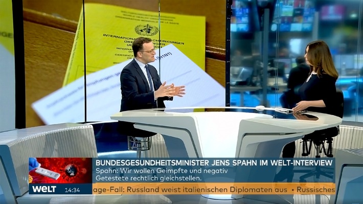 (ots) - Vor dem heutigen Impfgipfel war Bundesgesundheitsminister Jens Spahn zum Interview beim Nachrichtensender WELT. Im Gespräch mit Tatjana Ohm ging es um die momentan wichtigsten Fragen in Bezug auf die Priorisierung beim Impfen, das Beenden von Grundrechtseinschränkungen für Geimpfte und die Situation der Jugendlichen.