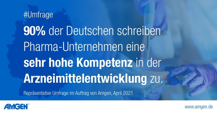 München (ots) - Das Ansehen von Pharma-Unternehmen ist in den vergangenen drei Jahren deutlich gestiegen. Heute schreiben neun von zehn Befragten den Unternehmen eine sehr hohe Kompetenz in der Arzneimittelentwicklung zu. Das ist ein Anstieg von elf Prozentpunkten im Vergleich zu einer Amgen-Umfrage aus dem Jahr 2018. Zwei Drittel geben an, dass sich ihre Meinung über Pharma-Unternehmen durch die Covid-19-Pandemie deutlich verbessert hat. Dies zeigt eine repräsentative Bevölkerungsumfrage zur Arzneimittelversorgung in Deutschland im Auftrag des Biotechnologie-Unternehmens Amgen. (1, 2)