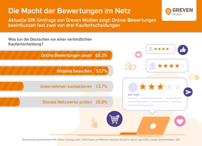 "Woran sich Verbraucher vor dem Kauf orientieren / Aktuelle GfK-Umfrage von Greven Medien zeigt: Online-Bewertungen beeinflussen fast zwei von drei Kaufentscheidungen (FOTO)"