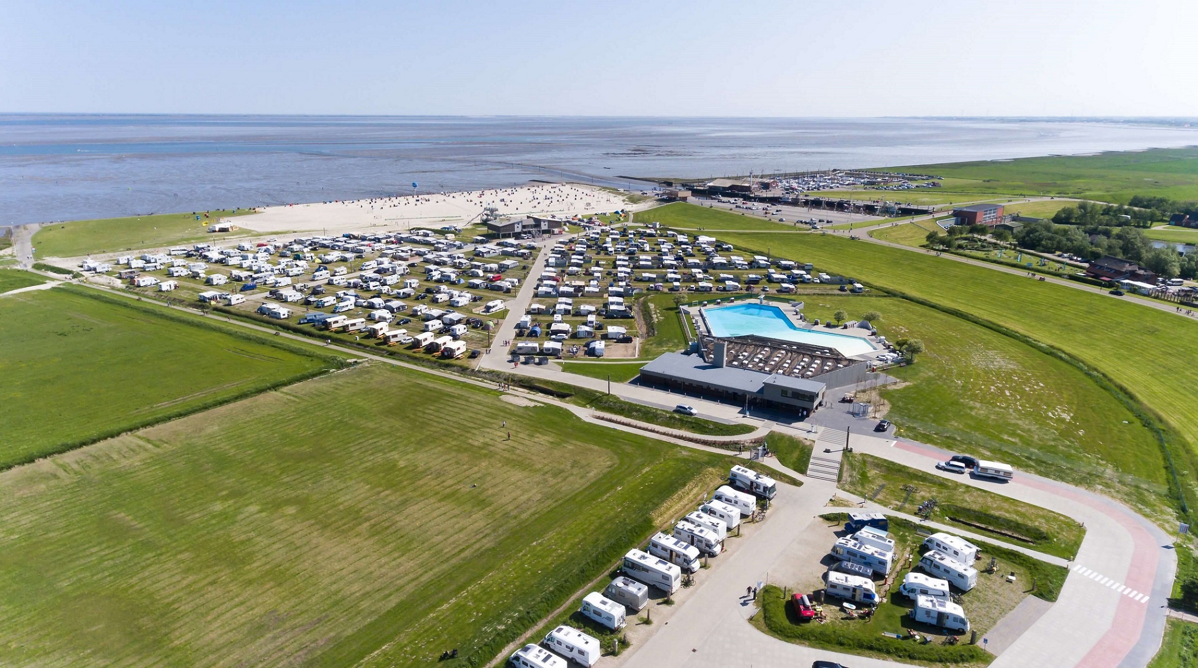 Plätze direkt am Strand bietet die Ferienregion Dornum an der niedersächsischen Nordseeküste mit ihren Hafenorten Dornumersiel und Neßmersiel. Direkt vis-a-vis zu den Ostfriesischen Inseln Norderney und Baltrum liegt hier der "Campingplatz am Nordseestrand" in Dornumersiel. Großzügige Stellplätze, moderne Sanitärgebäude, urige Mietunterkünfte und freundliche Mitarbeiter, die perfekten Rundum-Service bieten, sorgen für viel Komfort auf dem Campingplatz.