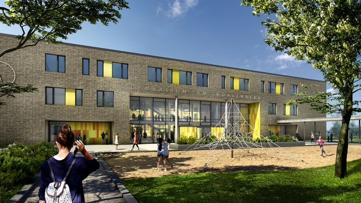 "Ein Highlight des Neubaus wird der neue Innenhof sein, der als offenes Klassenzimmer konzipiert wird. Bei gutem Wetter kann der Unterricht hier zukünftig unter freiem Himmel stattfinden", erklärt Stefan Wulff, Geschäftsführender Gesellschafter von OTTO WULFF. Außerdem wird auf Nachhaltigkeit geachtet: "Wir bauen das Gymnasium als besonders energiesparendes Gebäude nach dem KfW-Effizienzhaus-Standard 40. Auf dem Dach wird eine Photovoltaikanlage installiert, die die Schule mit Solarstrom versorgt", so Wulff weiter.