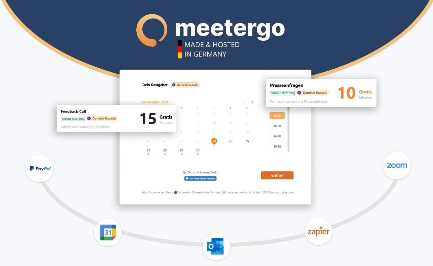 (firmenpresse) - Freelancer oder Selbstständige, die bis jetzt wöchentlich Arbeitszeit und damit Geld für die Planung von Terminen wie Meetings oder Telefonaten opfern mussten sollen nun endlich erlöst werden. meetergo bietet nicht nur eine Lösung, sondern revolutioniert die komplette Kommunikation mit Kunden. meetergo vereinbart Terminplanung mit Kunden, gibt ihren Kunden eine Plattform für den Zahlungsverkehr, synchronisiert sich mit ihren Kalendern, ist von überall her nutzbar, benachrichtigt und informiert Sie über anstehende Termine und gibt einen Überblick über ihre Unternehmen. All das mit nur einem Link.