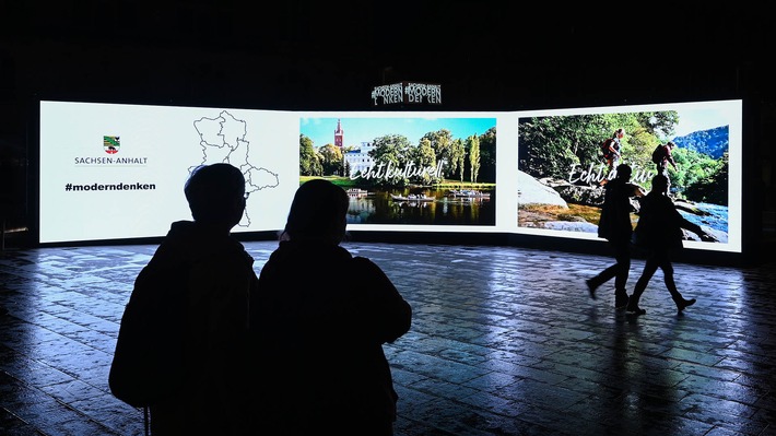 Gastgeber für die Feier zum Tag der Deutschen Einheit am 3. Oktober war in diesem Jahr Sachsen-Anhalt. Bei der EinheitsEXPO in Halle (S.) stellte das Land seine Regionen auf einer riesigen Videowand mitten auf dem Marktplatz vor.