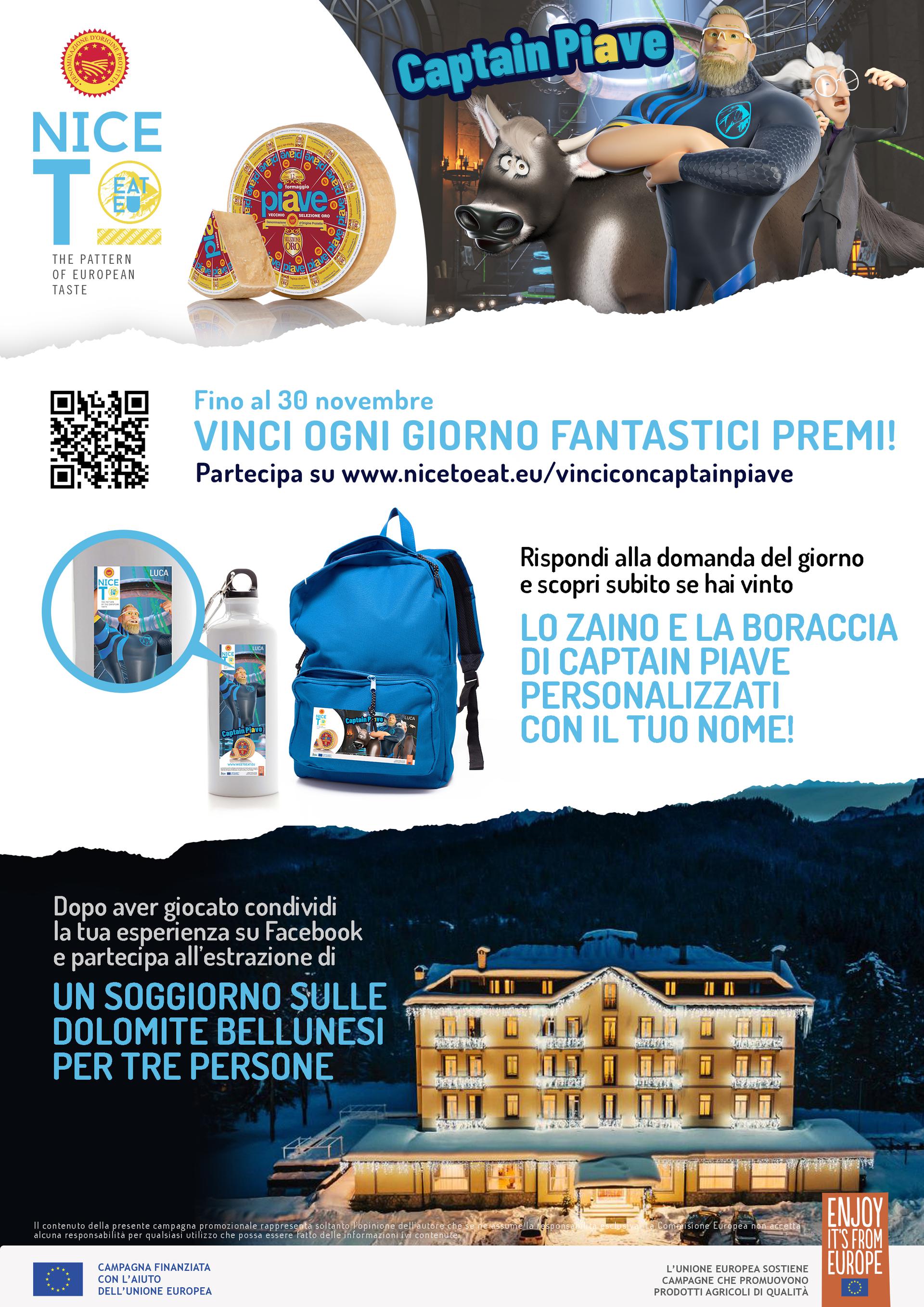 (firmenpresse) - Busche 29.09.2021 - In Kürze startet der neue Wettbewerb, bei dem sich alles um die Welt des PIAVE DOP-Käses dreht. Die im Rahmen der europäischen Kampagne Nice To Eat-EU organisierte Initiative, die darauf abzielt, Kindern zwischen 6 und 11 Jahren die Herkunft, den guten Geschmack und die besonderen Eigenschaften des Piave DOP-Käses zu vermitteln, heißt "Gewinne mit Capitan Piave" und findet vom 01.10.2021 bis zum 30.11.2021 statt.