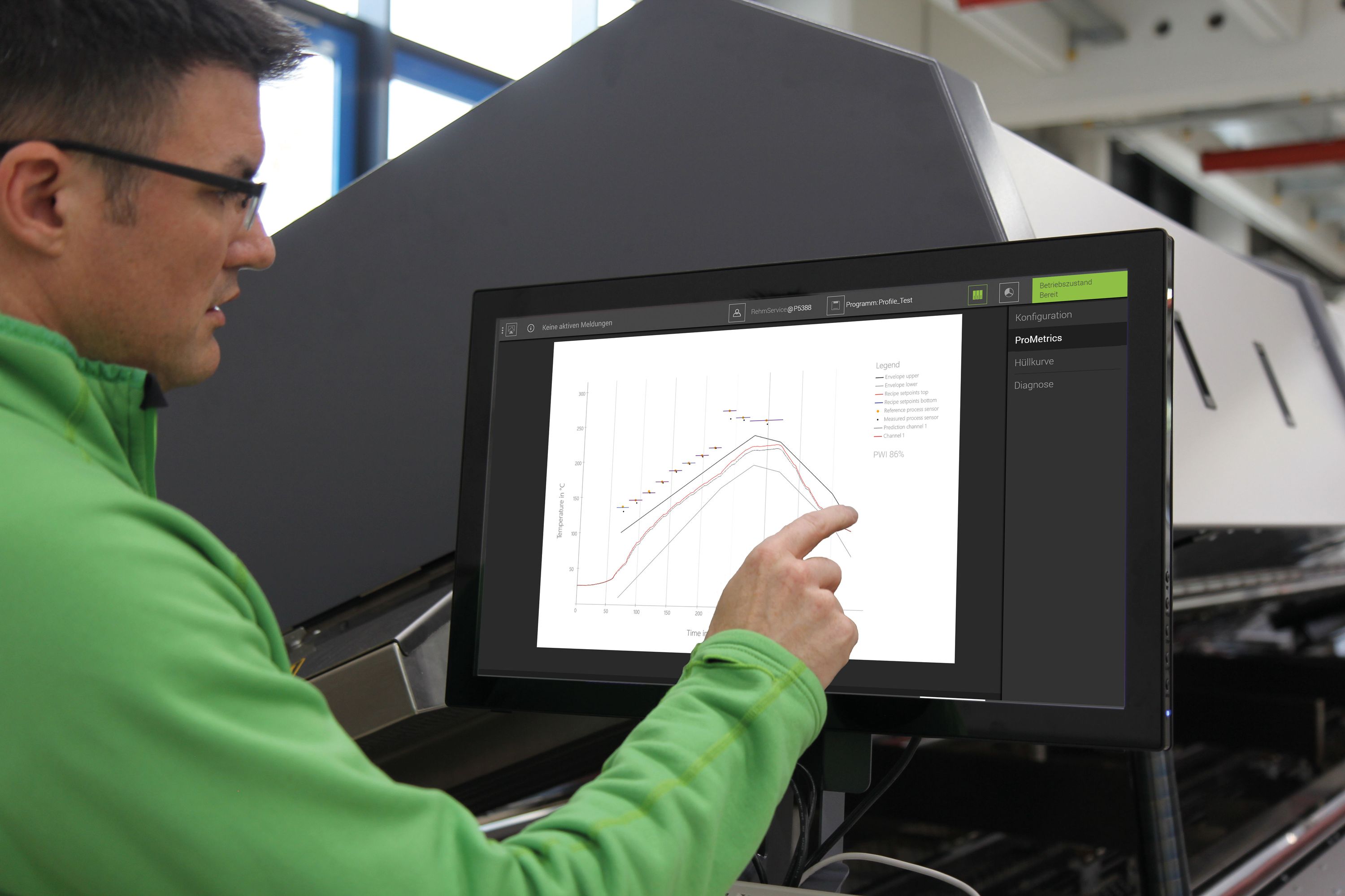 Um ProMetrics von Rehm Thermal Systems effektiv nutzen zu können, werden zur optimalen Qualitätskontrolle des Lötprofils sowohl Software- als auch Hardwarekomponenten benötigt. Zur Erfassung der Daten kommt die Solderstar-Software mit zugehörigem Lizenz-Dongle zum Einsatz. Die Solderstar-Software ist hierbei in die ViCON integriert und hilft bei der thermischen Profilierung. Mittels eines Messdatenloggers von Solderstar werden Temperaturen eines Referenzboards aufgezeichnet, um die Prozessstabilität der Anlage überprüfen zu können. Die Anlage ist mit Wächtern zur Erfassung der Temperaturen ausgestattet, zusätzlich werden in den Heizzonen die Temperaturen mittels Sensoren erfasst.