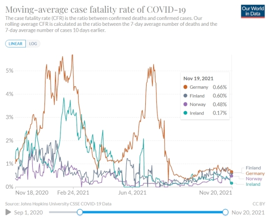 https://ourworldindata.org/explorers/coronavirus-data-explorer?zoomToSelection=true&time=2020-11-18..latest&facet=none&pickerSort=desc&pickerMetric=cfr&Metric=Case+fatality+rate&Interval=7-day+rolling+average&Relative+to+Population=true&Align+outbreaks=false&country=DEU~FIN~NOR~IRL