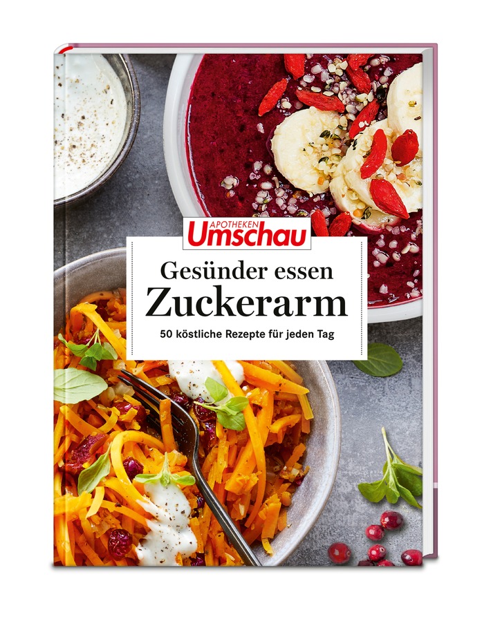 Millionen Menschen vertrauen der Gesundheitskompetenz der Apotheken Umschau. Nun gibt es das Expertenwissen in Gesundheitsfragen auch als Buchreihe: "Gesünder essen - Zuckerarm" (ISBN: 978-3-927216-68-6, 19,99 EUR) ist der neunte Band in der Reihe nach "Der stressfreie Rücken" (ISBN 978-3-927216-67-9, 19,99 EUR), "Essen gegen Entzündungen" (ISBN-978-3-927216-65-5), "Schöne Haut" (ISBN 978-3-927216-56-3), "Vegetarisch mit Genuss kochen" (ISBN: 978-3-927216-58-7), "Heilpflanzen" (ISBN: 978-3-927216-55-6), "Superfoods" (ISBN 978-3-927216-57-0), "Gesunde Ernährung" (ISBN 978-3-927216-52-5) sowie "Gesund abnehmen" (ISBN: 978-3-927216-53-2).