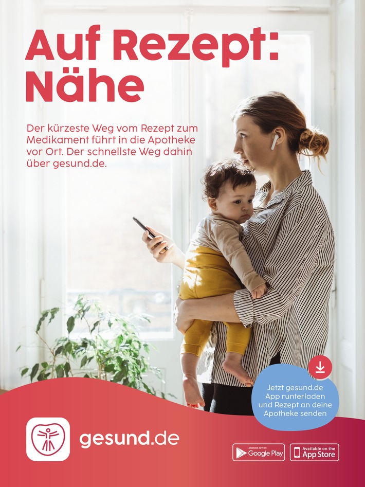 Unter der Headline "Auf Rezept: Service" wird auch der Bringdienst von gesund.de hervorgehoben: Bei Bestellungen über die Gesundheitsplattform finden schon heute über 90 Prozent der Menschen in Deutschland mindestens eine Apotheke in der Nähe, die sie innerhalb weniger Stunden bis nach Hause beliefert.