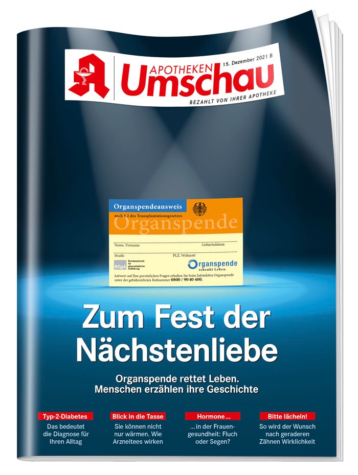 Diese Meldung ist nur mit Quellenangabe zur Veröffentlichung frei. Das Gesundheitsmagazin Apotheken Umschau 12B/2021 ist aktuell in den meisten Apotheken erhältlich. Viele weitere interessante Gesundheits-News gibt es unter https://www.apotheken-umschau.de sowie auf Facebook (https://www.facebook.com/Apotheken.Umschau/) und Instagram (https://www.instagram.com/apotheken_umschau/).