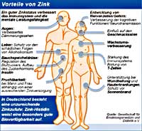 (firmenpresse) - Pünktlich zum Frühjahrsbeginn reagieren immer mehr Menschen mit heftigem Schnupfen, ständigem Niesen sowie brennenden und tränenden Augen statt sich über die bunte Blütenpracht zu freuen. Wissenschaftler vermuten, dass ein Mangel des Spurenelementes Zink für Heuschnupfen mitverantwortlich sein kann und empfehlen daher eine zinkreiche Ernährungsweise, berichtet heute Elisabeth Warzecha, Diplom-Ingenieurin der Ernährungstechnik von der Gesellschaft für Ernährungsmedizin und Diätetik e.V. aus Aachen. Die von Heuschnupfen Geplagten schütten beim Kontakt mit den Pollen körpereigene Botenstoffe wie Histamin aus, das die Symptome des Heuschnupfens hervorruft. Allergische Reaktionen sind auf eine Überempfindlichkeit gegen Eiweisskomponenten bestimmter Pollen und Gräser zurückzuführen, die an den Schleimhäuten von Atemwegen, Nase und den Augen die allergische Reaktion hervorrufen. Diese Eiweissstoffe binden an bestimmte weisse Blutkörperchen im Körper und die darauf folgende Histaminausschüttung ruft die Beschwerden hervor. Das Spurenelement Zink ist an zahlreichen Stoffwechselvorgängen im Körper beteiligt und wirkt antiallergisch, indem es bestimmte Immunzellen im Körper stabilisiert und die Ausschüttung der Botenstoffe nach Kontakt mit dem Allergen verhindert. Das Immunsystem profitiert vom Tausendsassa Zink, indem es die Histaminfreisetzung dosisabhängig hemmt und die Empfindlichkeitsschwelle gegenüber allergenen Substanzen erhöht (1). Gute Zinklieferanten sind Rindfleisch, Austern und Innereien. Lässt sich die Zufuhr nicht über die Nahrung sicherstellen oder ist der Bedarf durch Allergien erhöht, sind Zinkpräparate zu empfehlen. Das Spurenelement kann der Körper am besten in Form organischer Verbindungen, wie Zink-Histidin oder Zink-Cystein aufnehmen. Weitere Informationen sind unter www.ernaehrungsmed.de erhältlich. Die Grafik ist unter http://www.medixtra.net/18104/30023.jpg downloadbar.