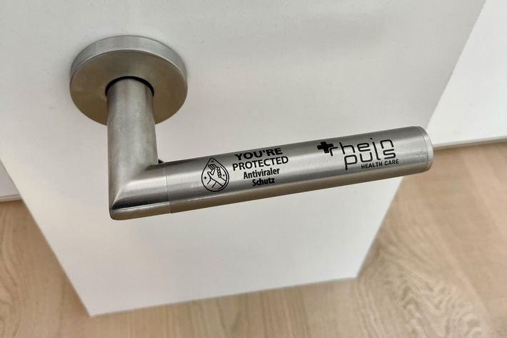 Stark genutzte Oberflächen werden zum Schutz mit der sogenannten "YOU'RE PROTECTED" Antivirenfolie bedeckt, deren Wirksamkeit von führenden medizinischen Laboren bestätigt wurde. Mithilfe der virenabweisenden Folie bietet die Rheinpuls Health Care ihren Kunden einen Rundum-Service für den Schutz gegen Keime, Bakterien und Viren. Unternehmen wie Vertriebe, Hotels, Arztpraxen und Supermärkte können ihren Kunden und Mitarbeitern so einen 99-prozentigen Schutz bieten.