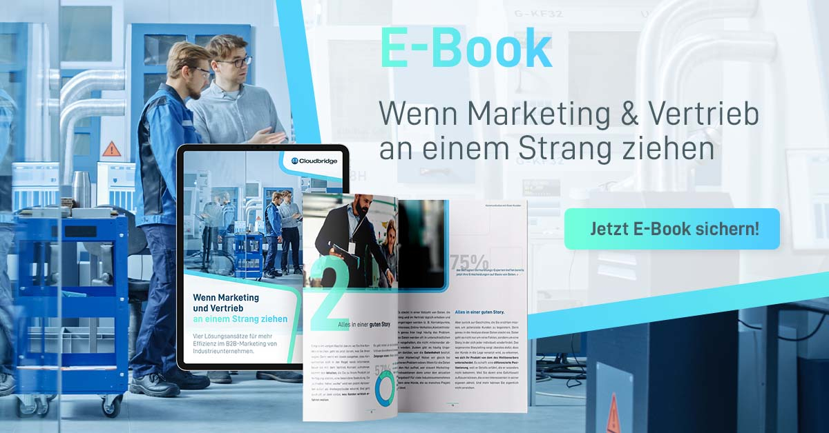 Marketing und Vertrieb gehören in allen Branchen zu den wichtigsten Bereichen in Unternehmen. Doch viel zu häufig arbeiten beide Seiten gar nicht oder nicht effektiv genug zusammen. In einem neuen E-Book zeigt die Münchner Unternehmensberatung Cloudbridge nun Wege auf, wie beide Einheiten künftig besser an einem Strang ziehen und damit noch mehr zum Erfolg vor allem von Industrieunternehmen beitragen können.