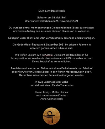 Weil die Fülle an Meldungen zu Corona mich schon seit dem Frühjahr 2020 überfordert und stresst, lasse ich nur noch ganz wenig an mich heran. So auch in Bezug auf Dr. Andreas Noack, der am 26. November hingerichtet wurde, getarnt als Schlägerei.
