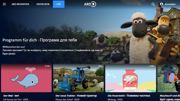 ARD Mediathek mit Angebot für ukrainische Kinder (FOTO)