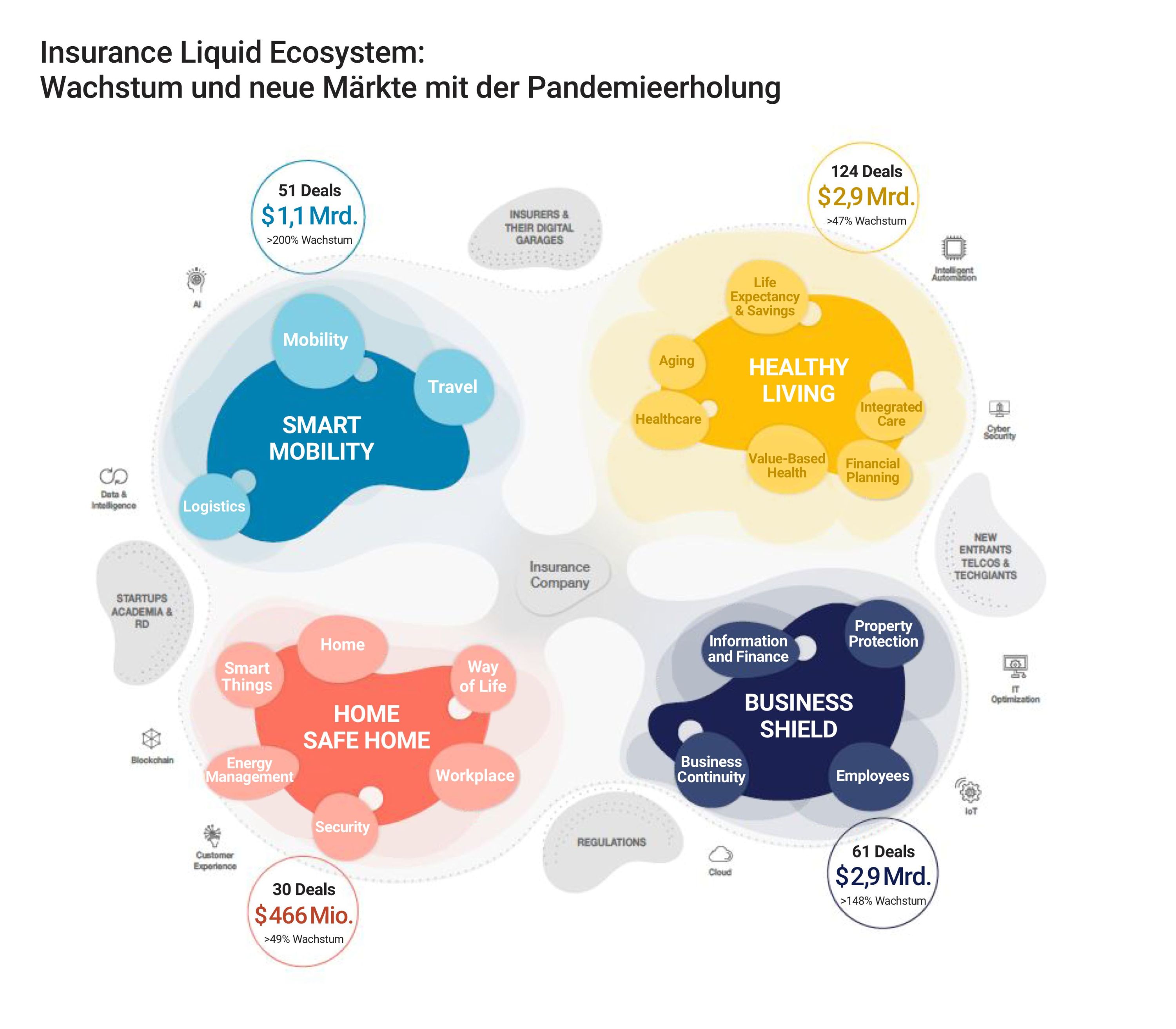 Die Marktanalyse wurde unter Berücksichtigung der Erholung nach einem von der Pandemie geprägten Jahr 2020 und der Stärkung der Branche im Jahr 2021 durchgeführt. Die kombinierte Analyse von Technologieriesen, Startups, digitalen Trends und zunehmenden Vorschriften ergibt ein realistisches Bild der Branche, der Anlegerpräferenzen und der Technologie. Sie gibt den Trend vor, der das Versicherungsuniversum im neuen digitalen Zeitalter umgestaltet.