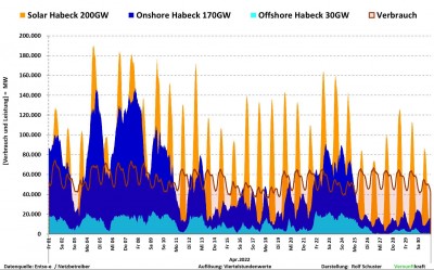 Nach den Plänen von Bundeswirtschaftsminister Habeck sollen die Windanlagen und Solaranlagen mehr als verdreifacht werden, von 120.000 auf 400.000 Megawatt. Die geplanten neuen Anlagen mit 280.000 MW installierter Leistung verschlingen 560 Milliarden kWh Primärenergie. Das sind etwa 15 Prozent des Energiebedarfs eines Jahres. Die Kosten für diesen Ausbau liegen bei 280 Milliarden Euro, 3.500 Euro pro Einwohner. Das sind acht Prozent des Bruttoinlandsproduktes oder das vierfache des Verteidigungsetats. Darüber hinaus werden die Kohlenstoffdioxid(CO2)-Emissionen erhöht. Das politische Ziel, CO2 zu reduzieren, scheitert mit diesen Ausbauplänen.