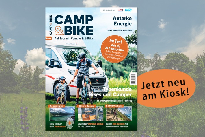 In der neuen Ausgabe von "Camp & Bike" (https://shop.doldemedien.de/Camp-und-Bike_3) der beiden Special-Interest-Verlage DoldeMedien und BVA BikeMedia, die ab dem 17. Mai am Kiosk erhältlich ist, werden alle Themen rund um Campen, Camper, Fahrrad, Zubehör und Reisen intensiv behandelt. Auf 124 Seiten gibt es alles, von der Kaufberatung, welches Fahrzeug sich für welchen Zweck und welche Zielgruppe eignet, über Fahrzeugtests bis hin zu interessanten Porträts über Radsportler und deren Camper. Das Magazin bietet zudem eine Marktübersicht der verschiedensten Transportsysteme für jede Fahrzeugart - vom Bulli über Kastenwagen und Reisemobile bis zum Wohnwagen - und zeigt die neuesten Trends rund ums Thema E-Bike. Garniert wird das Ganze mit Tourentipps, Reisen und Fahrtechnik.