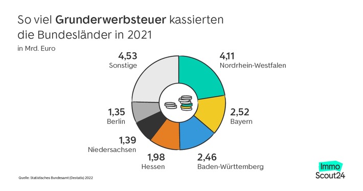 Wie hoch die Steuersätze der Länder sind und welches Bundesland am meisten an Immobilienkäufen mitverdient, zeigt eine Analyse von ImmoScout24.