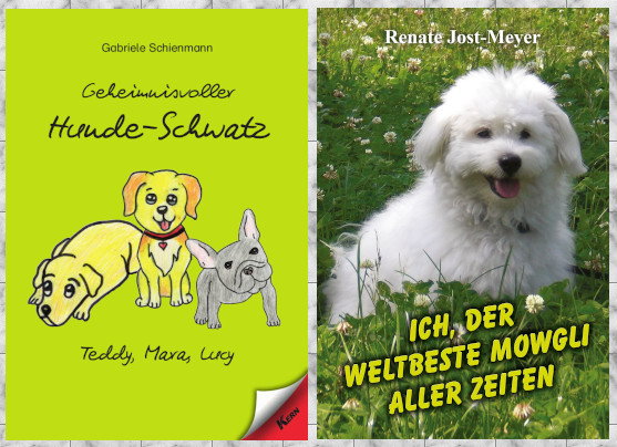 Schon länger veröffentlicht, aber eine ebenso empfehlenswerte lustige Hunde-Geschichte ist „Ich, der weltbeste Mowgli aller Zeiten“ (ISBN: 9783944224794). Besonders für Kinder, die Tiere lieben und gern viel lesen, lässt Renate Jost-Meyer den kleinen vorwitzigen Familienhund Mowgli Abenteuer aus seinem Leben erzählen. Auf 480 Seiten finden sich alle Streiche des kleinen, charmanten, weißen Coton de Tuléar aus den Schweizer Bergen.