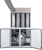 Während des Luftaustauschs entfernt das Gerät wirksam Pollen aus der Raumluft und schafft auf diese Weise auch für Menschen mit Allergien ein Umfeld, in dem sie deutlich weniger Beschwerden haben und leistungsfähig bleiben. Darüber hinaus befreit AIRCABINET die Luft von Feinstaub, Sporen, Aerosolen und sogar Viren. Nicht zuletzt wird der CO2-Gehalt der Raumluft signifikant vermindert: für ein erhöhtes Wohlbefinden und gesteigerte Konzentration in Klassenzimmern, Büros und Konferenzräumen. Durch sein steckerfertiges Gerätekonzept im Baukastensystem lässt sich das AL-KO AIRCABINET innerhalb von maximal einem Tag direkt im zu belüftenden Raum installieren.