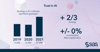(firmenpresse) - Heidelberg, 21. Juni 2022 --- Künstliche Intelligenz (KI) ist in Deutschland nicht das Reizthema, als das es manchmal gesehen wird, und dieser Umstand hat sich seit 2019 auch nicht verändert. Das ist ein Ergebnis der Langzeituntersuchung "Trust in AI Index" von SAS. Dabei handelt es sich nicht um eine Befragung, sondern um eine automatisierte Auswertung von Medienveröffentlichungen in deutschsprachigen Qualitätsmedien und auf Twitter. Seit Anfang 2019 wurden rund 75.000 Artikel und knapp 290.000 Tweets analysiert - ohne Ausgangshypothese und ohne Stichprobe. Eine hitzige Diskussion findet weder in den klassischen Medien noch auf dem Social-Media-Kanal statt, große Ausschläge im Meinungsklima sind nicht zu beobachten. Pro und Kontra halten sich die Waage, die Meinungstendenz in der Berichterstattung ist neutral bis leicht positiv. Erhebliche Skepsis gegenüber KI oder sogar kategorische Ablehnung findet nur in Einzelfällen statt.
